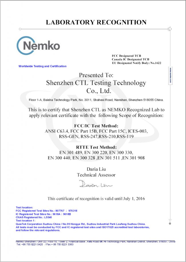 深圳市華檢檢測技術有限公司總部位于深圳市南山區,毗鄰科技園。是嚴格按照 ISO/IEC17025 國際實驗室管理規范組織建立的獨立的、第三方檢測實驗室。華檢實驗室的成立,旨在為中國的電子產品廠商進軍全球市場提供更權威、更專業、更便捷的產品測試和和認證及技術支持的渠道。目前在深圳、東莞建立了分支機構。